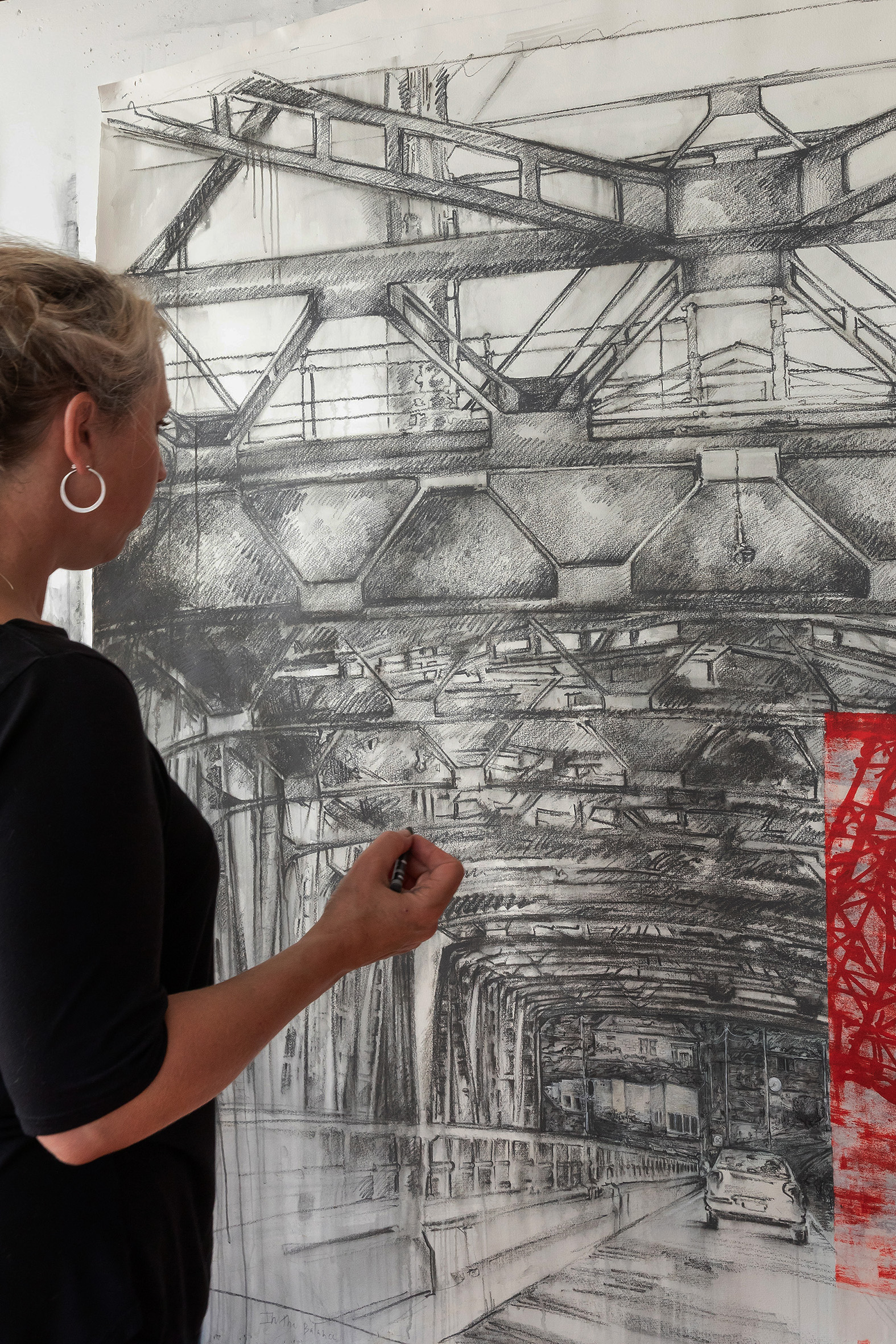 The figure in the landscape recurs throughout her work, functioning as self-portraiture and a symbol of experience within place. Line is her primary language—fluid, expressive, and intuitive—guiding each work through a process that is both spontaneous and deliberate, transforming the intangible into something tangible.